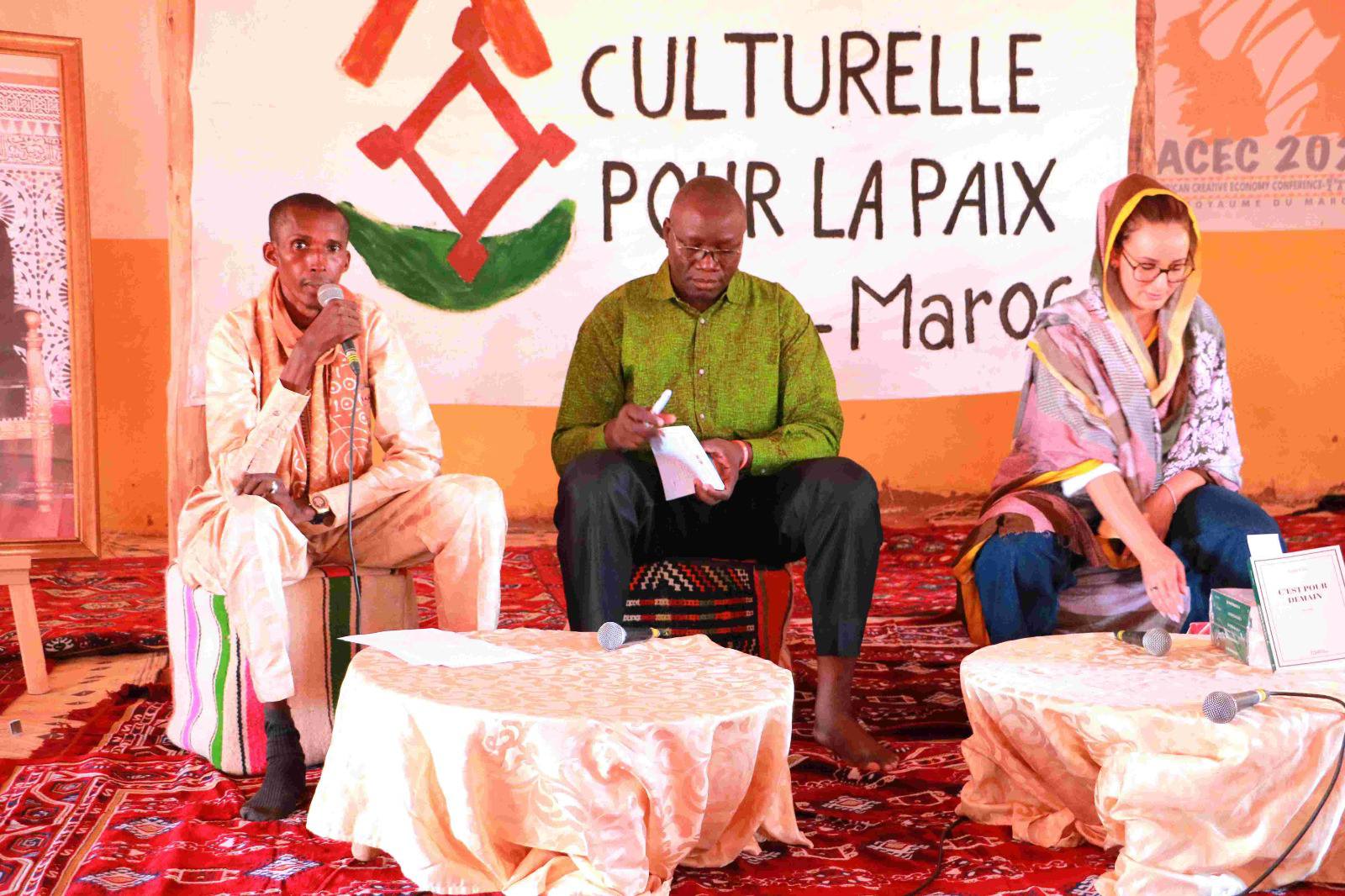 Maroc - Caravane Culturelle pour la Paix || Table round du Taragalte Festival – Under the Stars, à M’Hamid El Ghizlane au Maroc, ce dimanche 02 Novembre 2025, avec l’intervention de Moussa Berté, Coordinateur de la Caravane Culturelle pour la Paix et la Diversité et Monsieur Cheick Tidiane Seck artiste musicien sur la thématique « paix et du vivre ensemble »